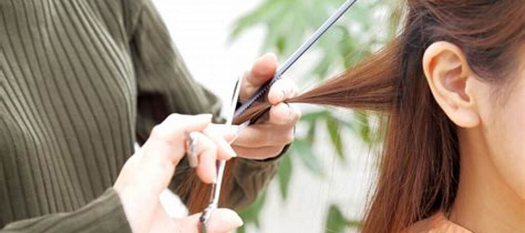 ハサミを横に入れて直線でカットしていく方法で、